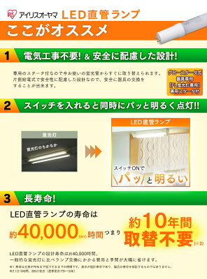 LED 蛍光灯 照明 LED直管ランプ 10形 LDG10T・N・3/5 アイリスオーヤマ工事不要 キッチン 洗面台 節約 安全 LED蛍光灯 直間 10W型 蛍光管 直管ランプ ランプ LED LED照明 省エネ 節電 キッチン 廊下 トイレ 教室 アイリス シンプル